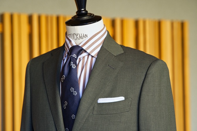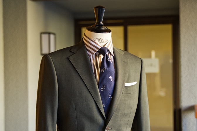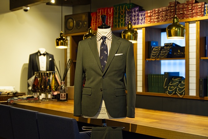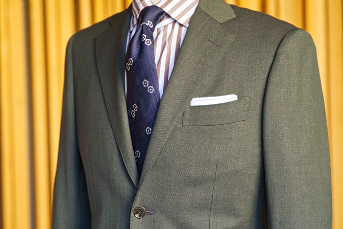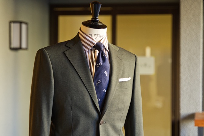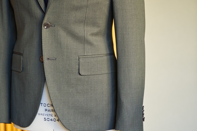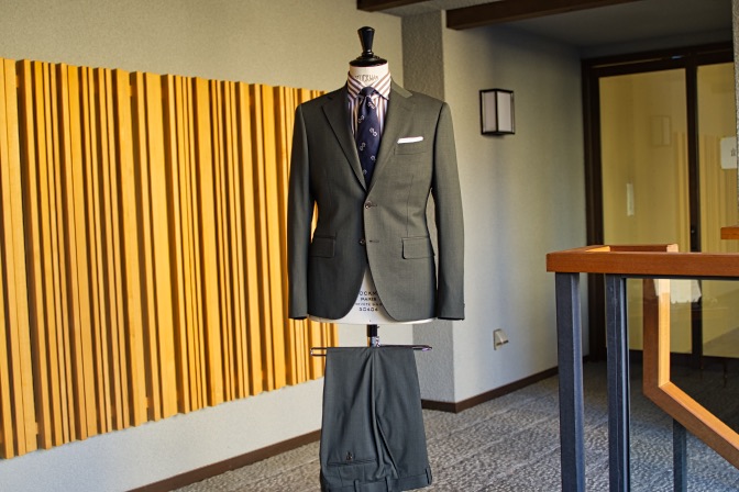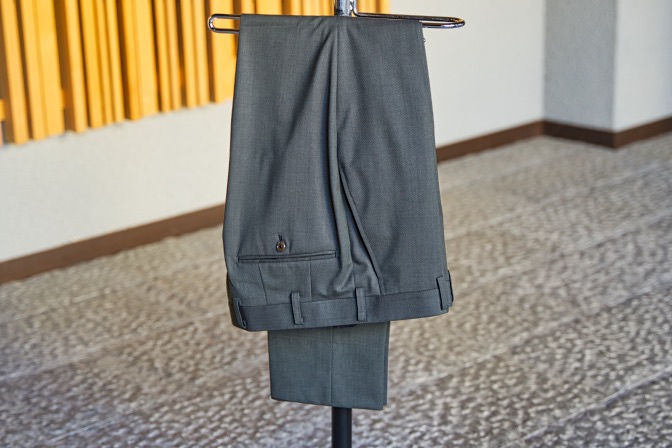 生地はTollegnoグリーン シングル2ボタンのスーツにてご注文いただきました。