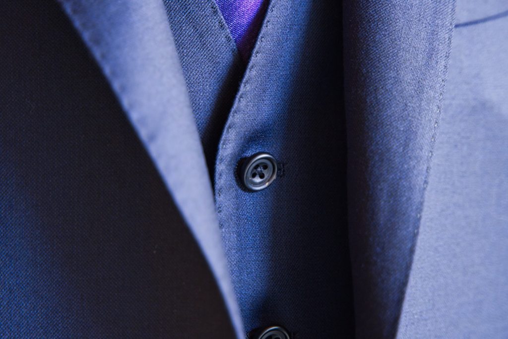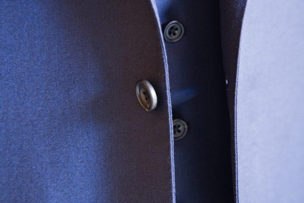 シングル2つボタンのスリーピースにてご注文いただきました。
