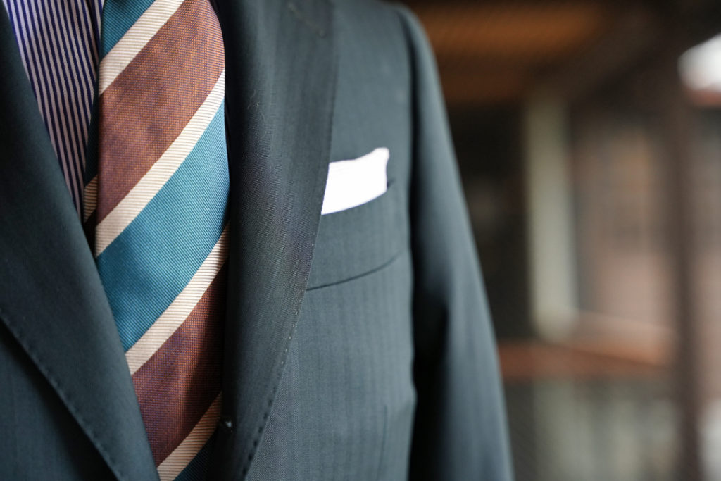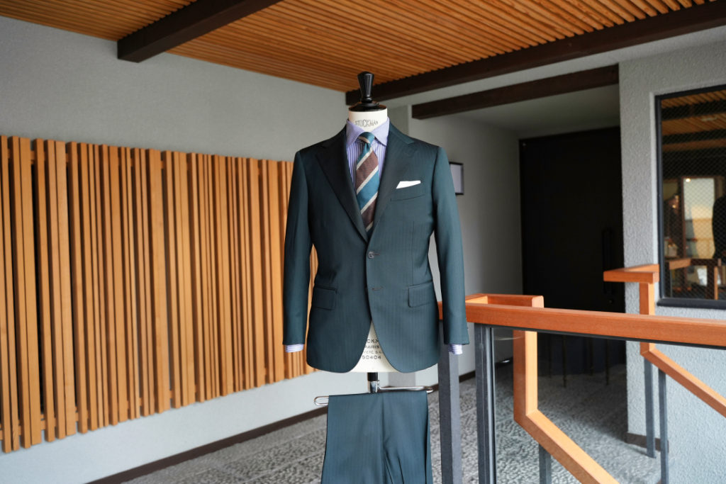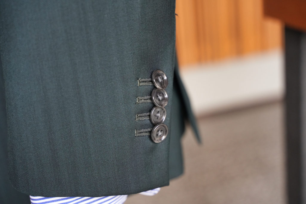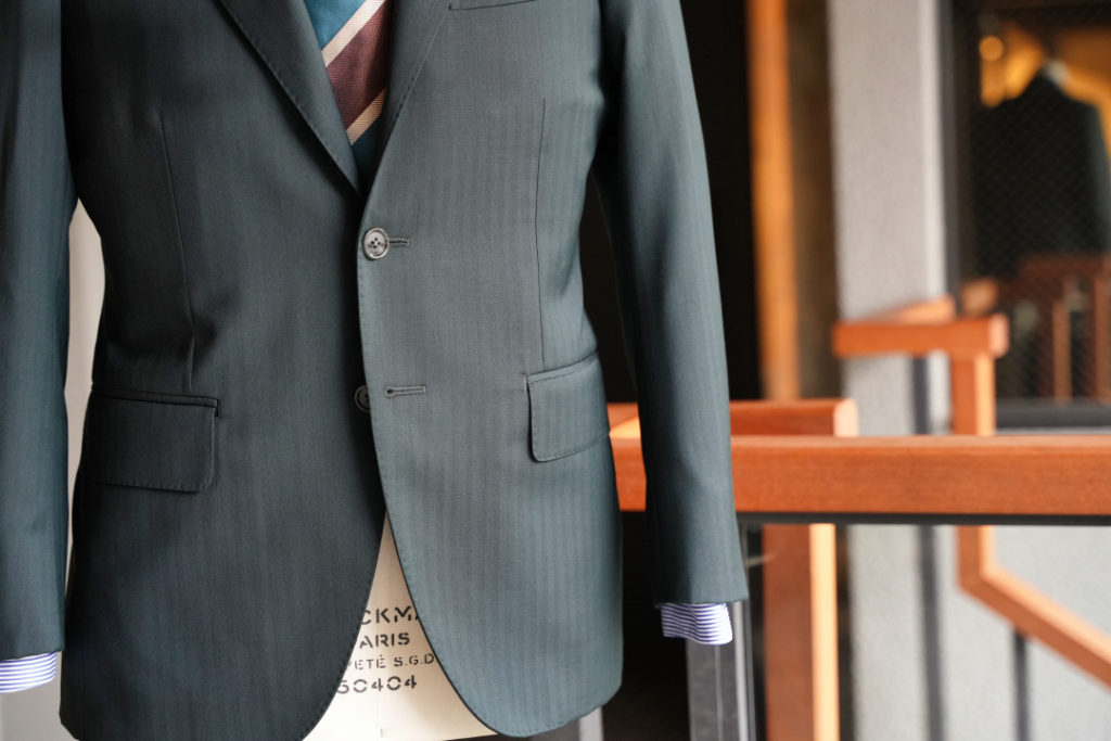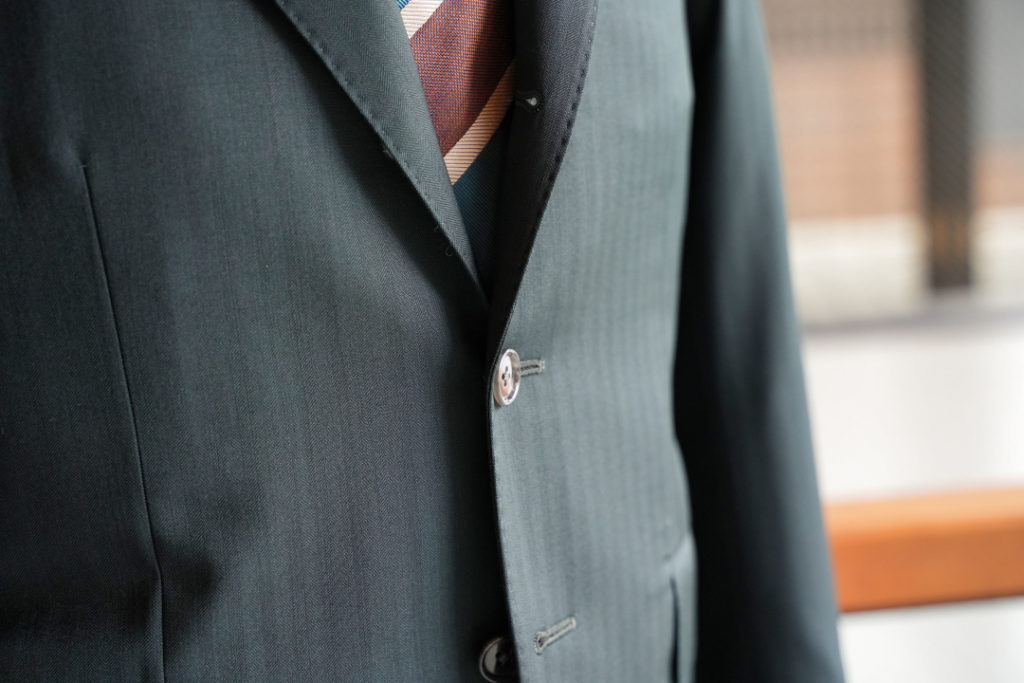 シングル3つボタン段返りのスーツにてご注文いただきました。
