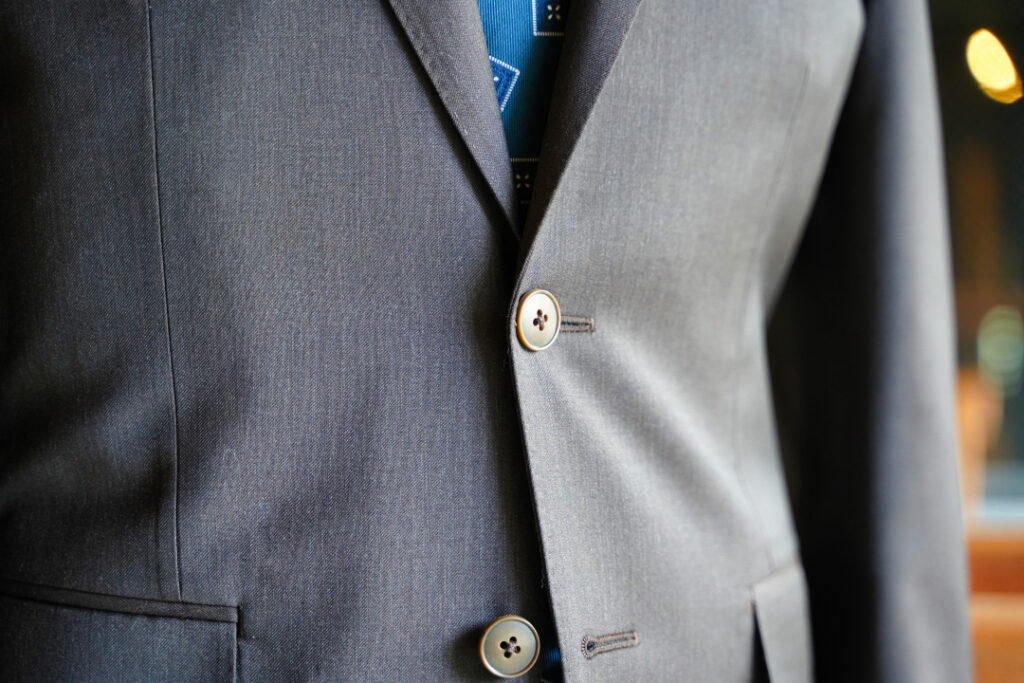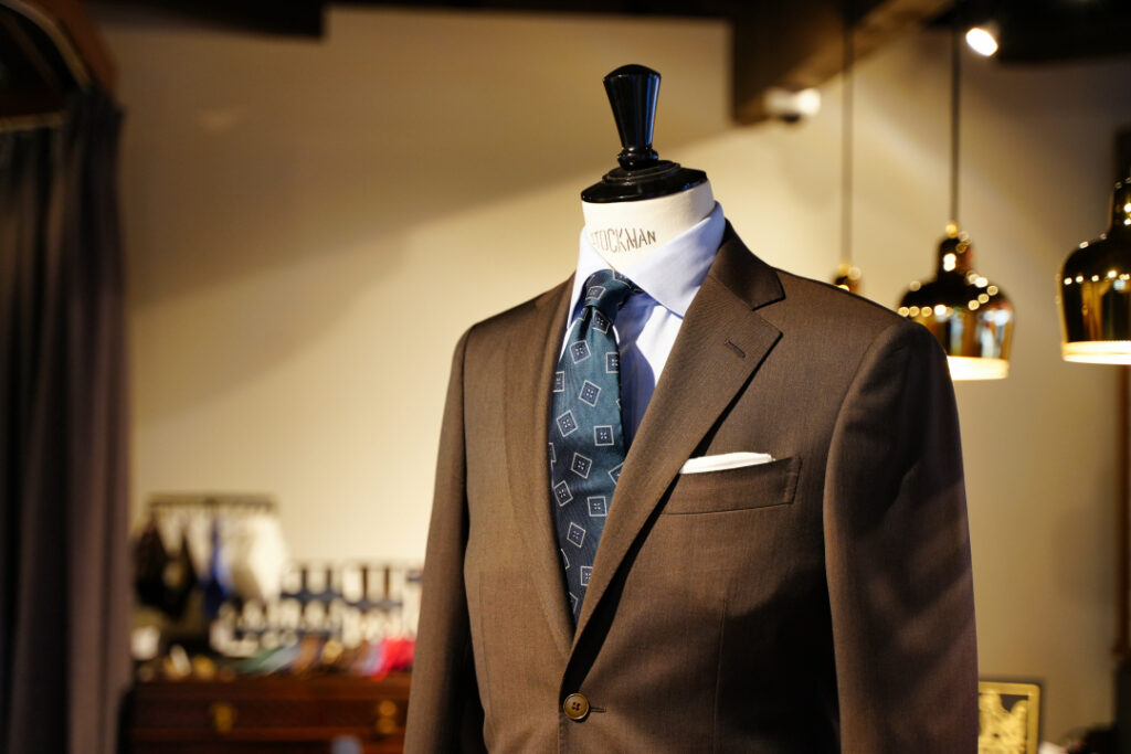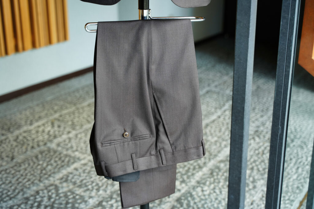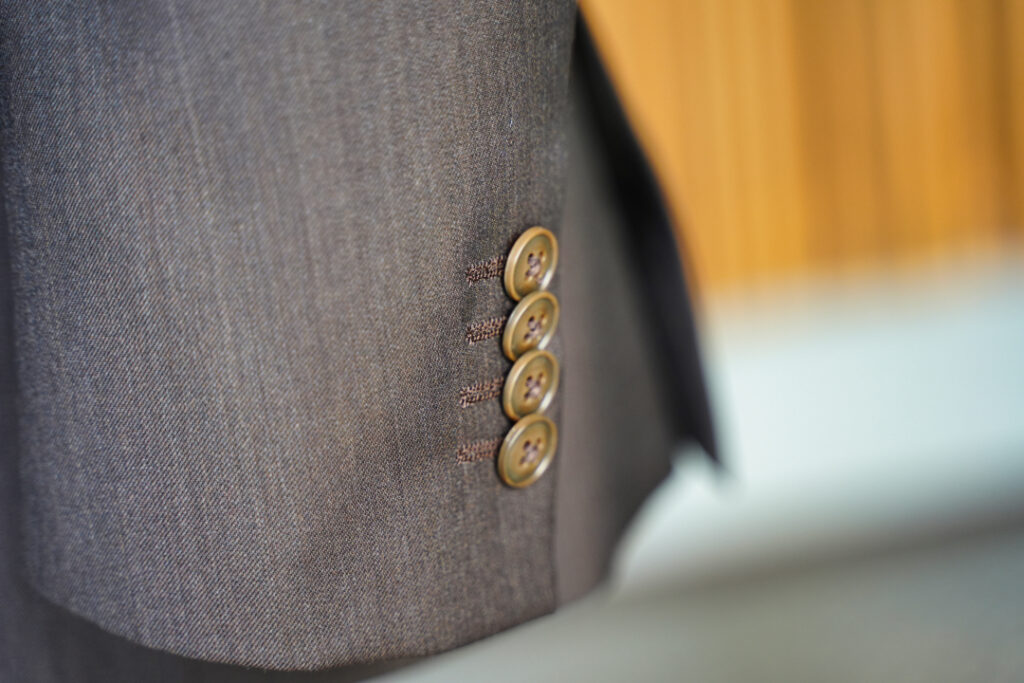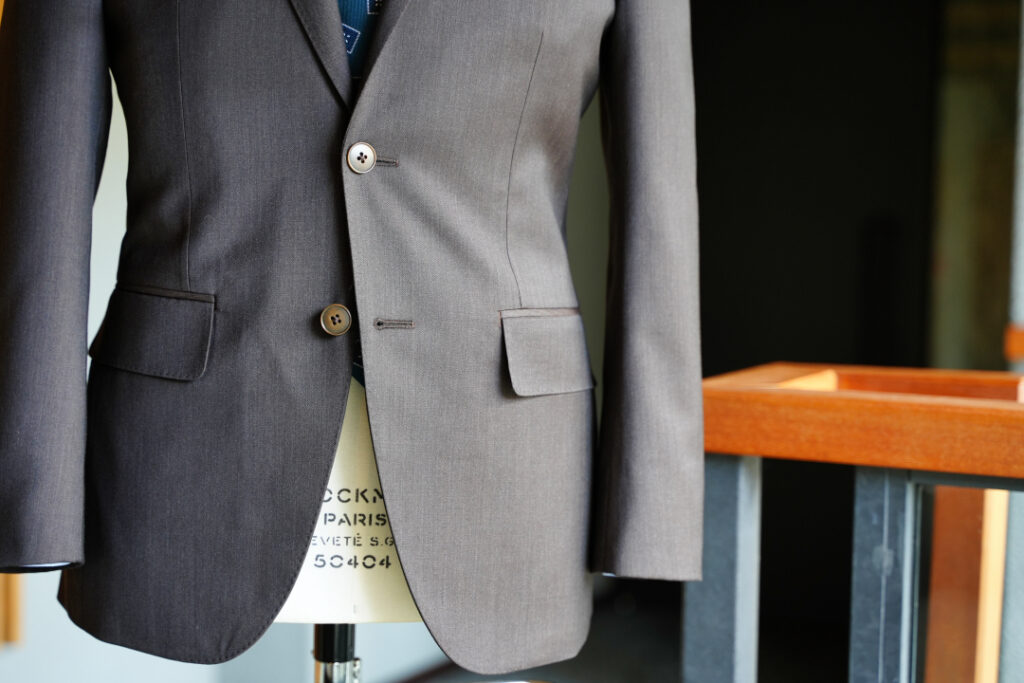 生地はBiellesi無地ブラウン シングル2ボタンのスーツにてご注文いただきました。