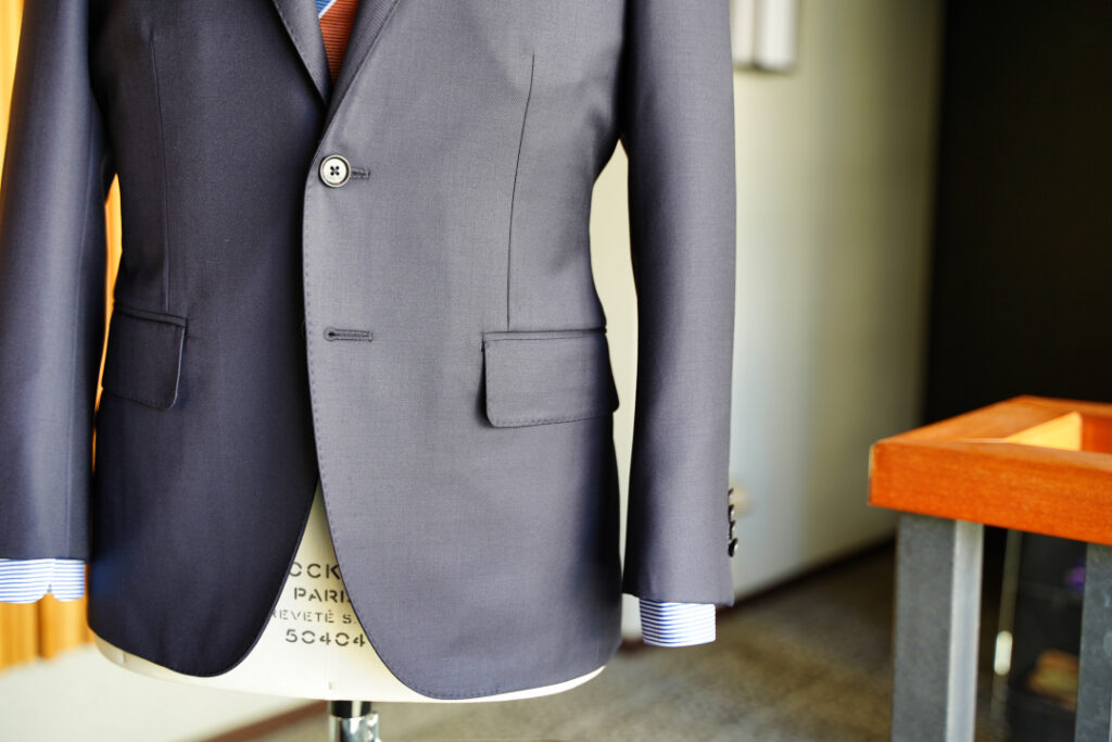 シングル2つボタンのスーツにてご注文いただきました。