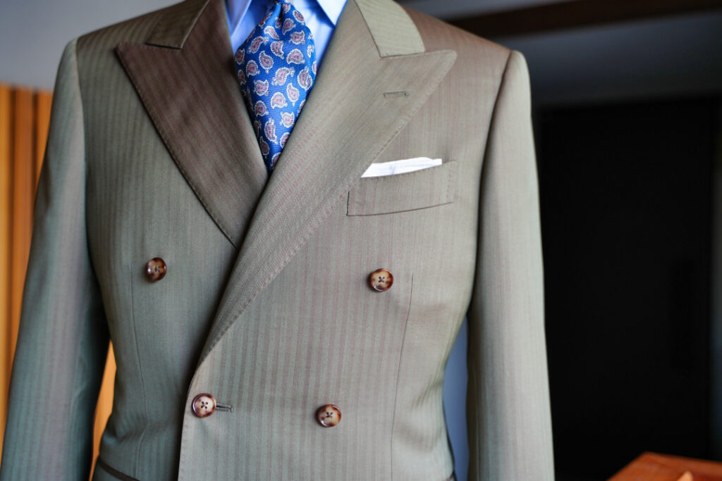 ダブル6×2ボタンのスーツにてご注文いただきました。
