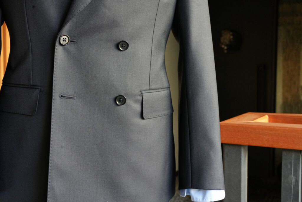 ダブル6×2ボタンのスーツにてご注文いただきました。