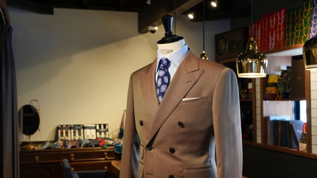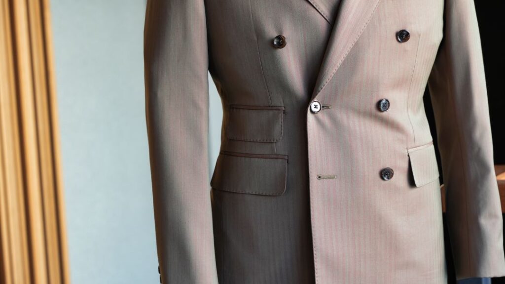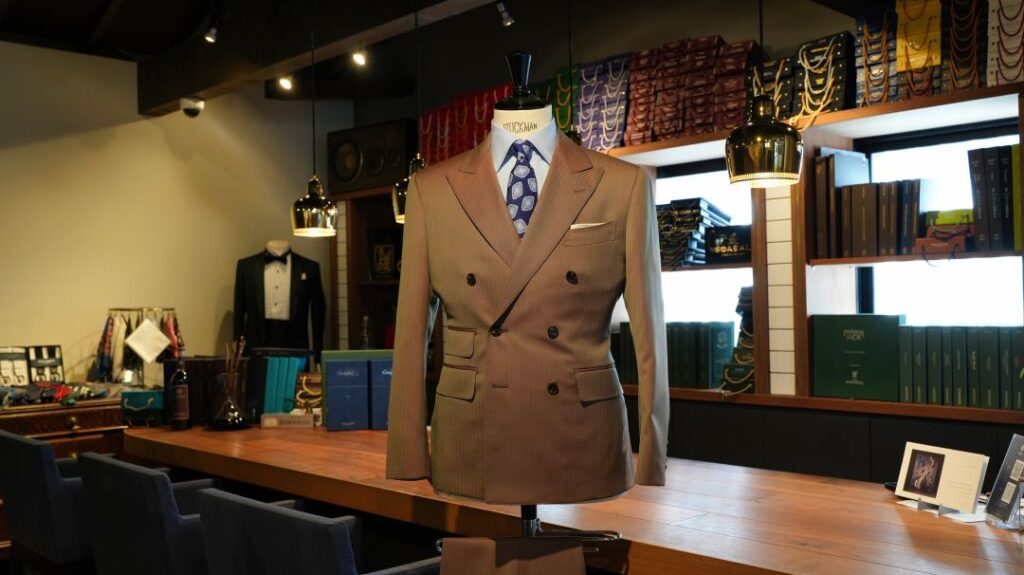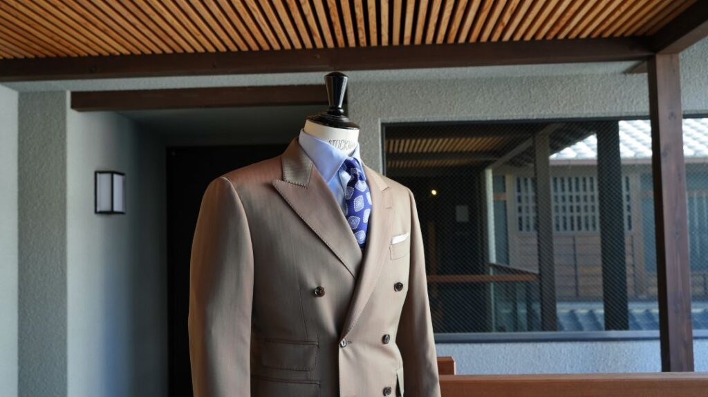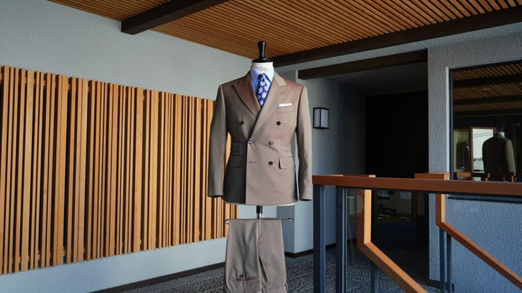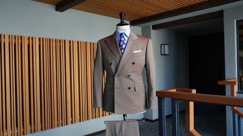 ダブル6×2ボタンのスリーピーススーツにてご注文いただきました。