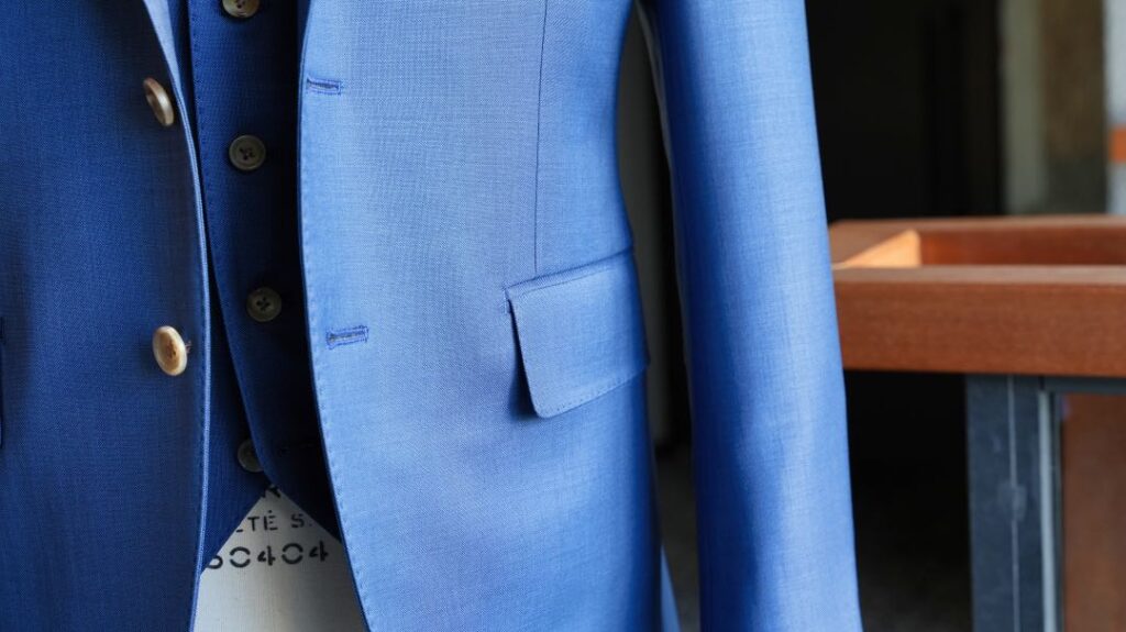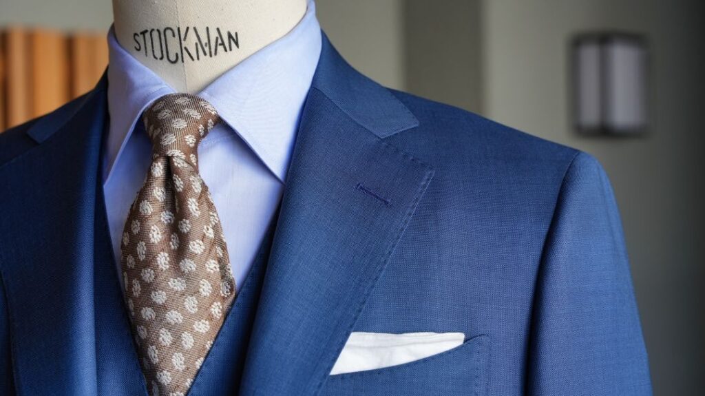 生地はDORMEUIL MILLENNIAL 無地ネイビーブルー