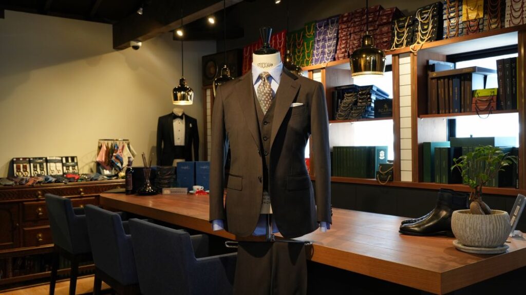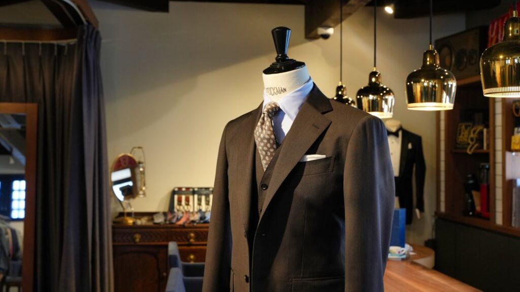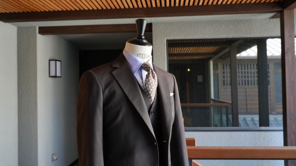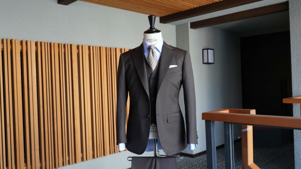 スタイルはかっちりスリーピース