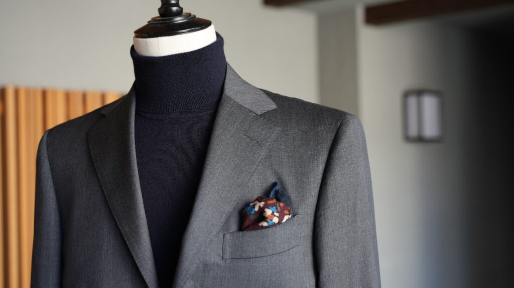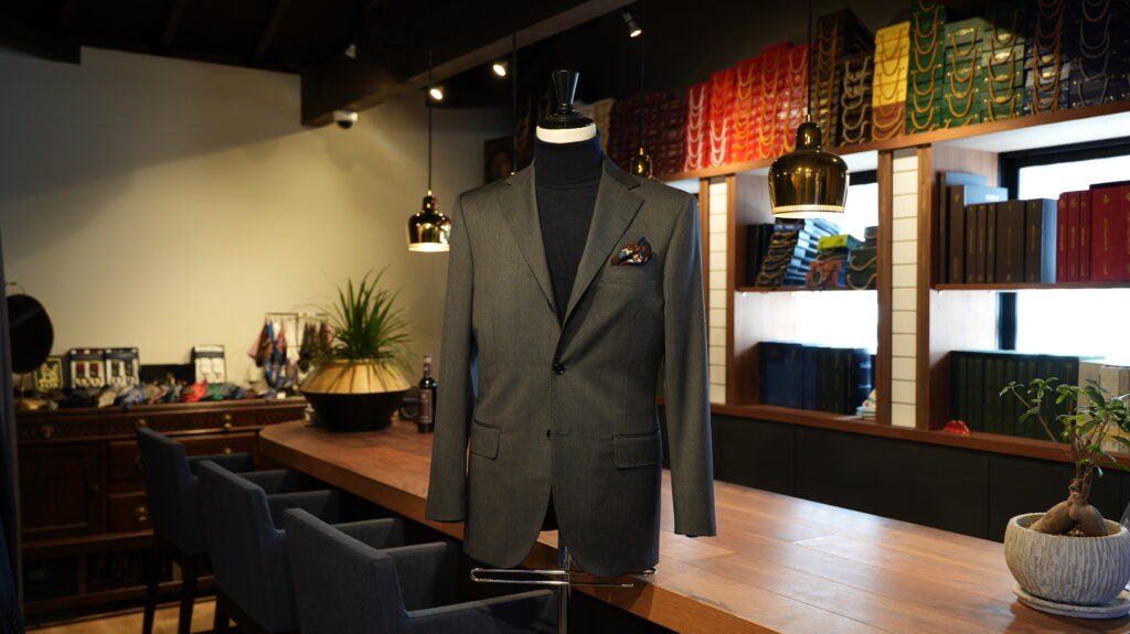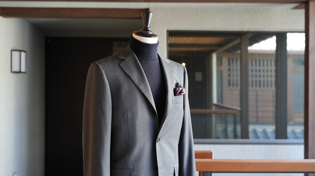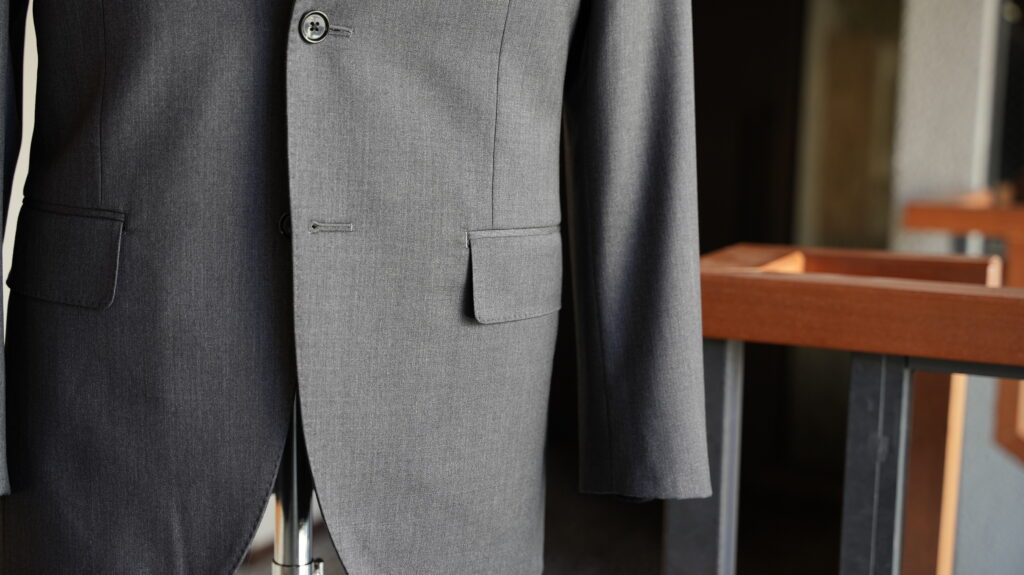 シングル3つボタンの段返りのジャケットにてご注文いただきました。