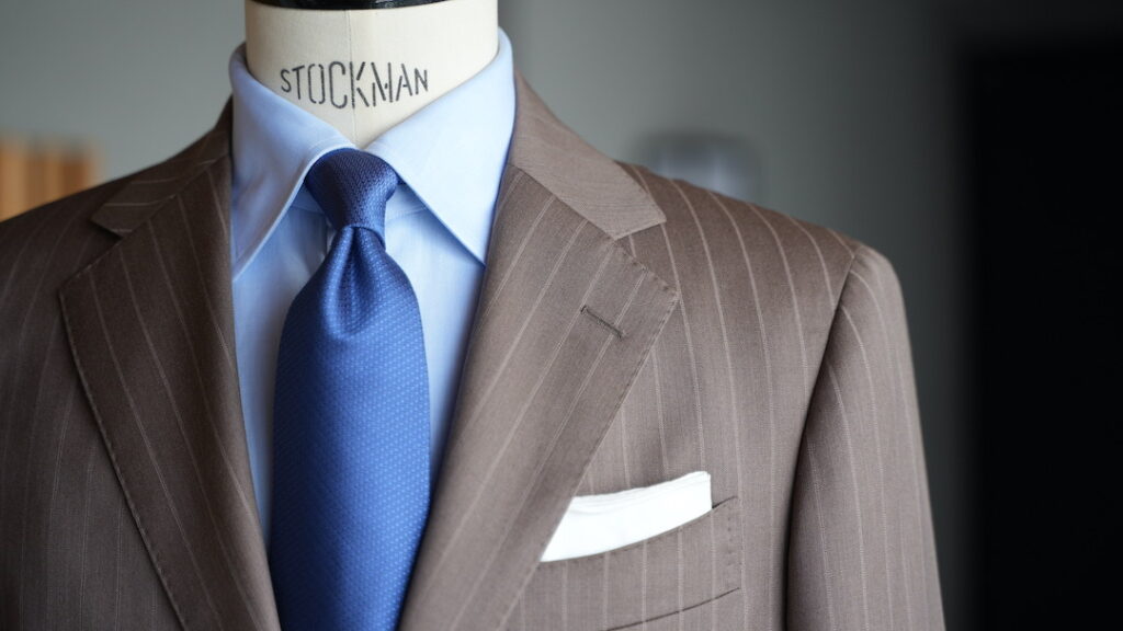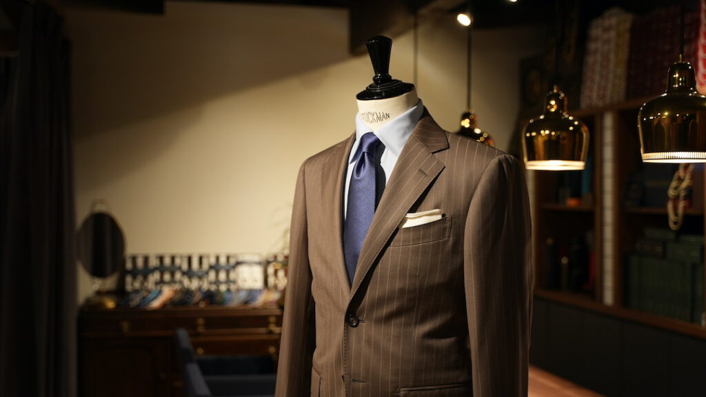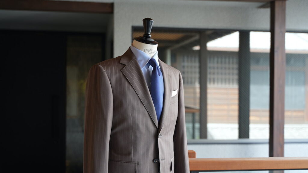 生地はBOWER ROEBUCK ライトブラウンストライプ