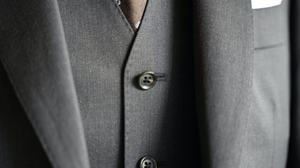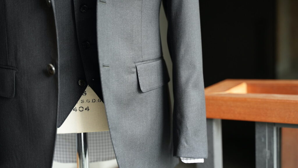 シングル2ボタンのスリーピーススーツにてご注文いただきました。