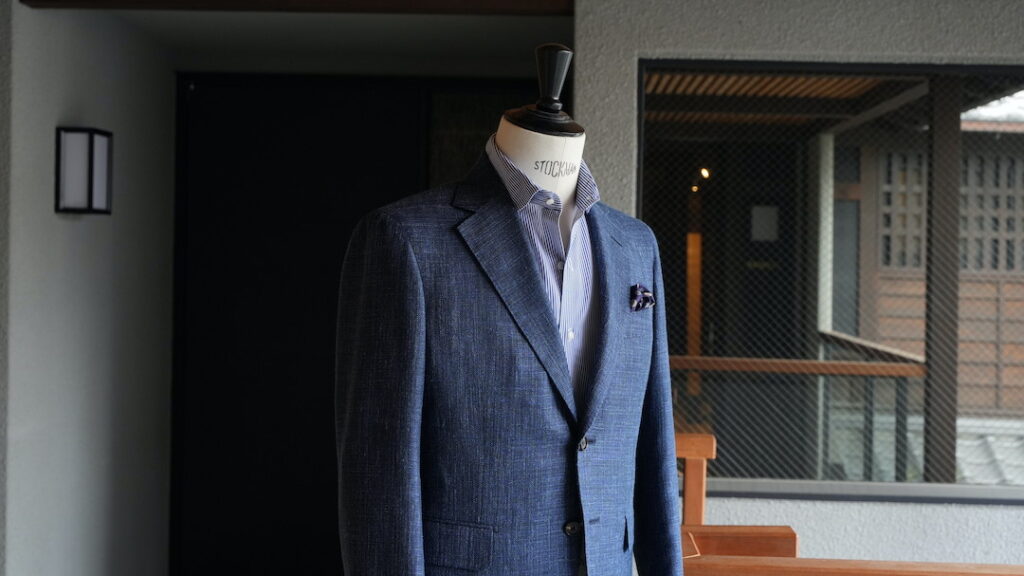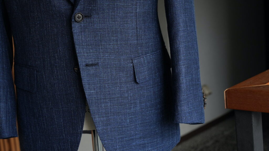 シングル2ボタンのジャケットにてご注文いただきました。