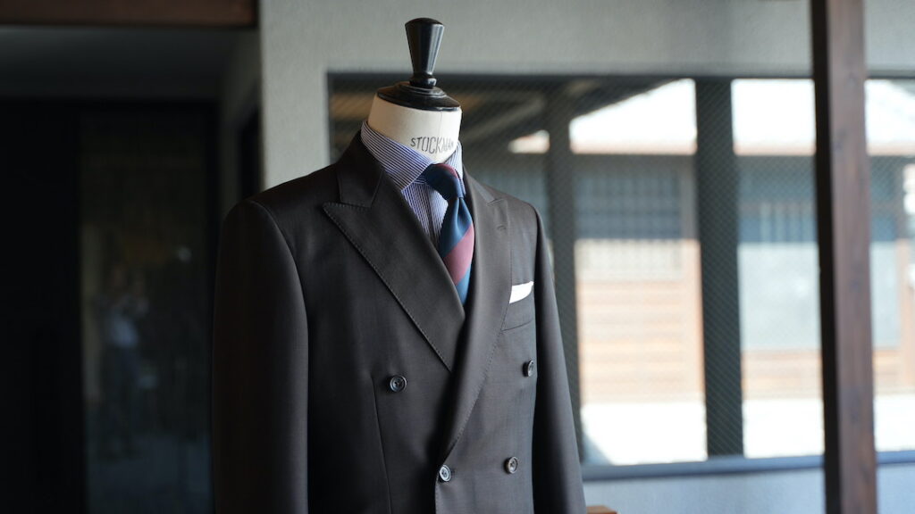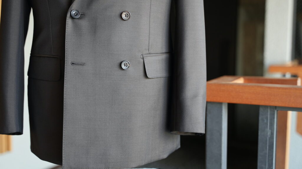 ダブル6×2ボタンのスーツにてご注文いただきました。