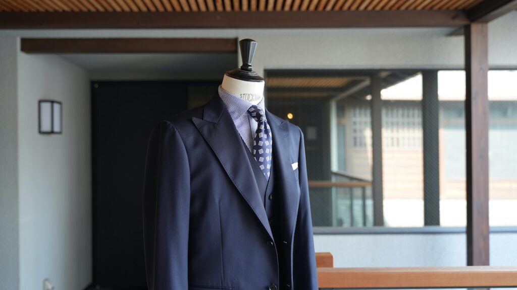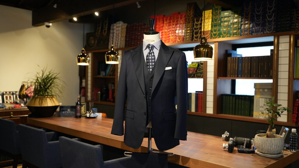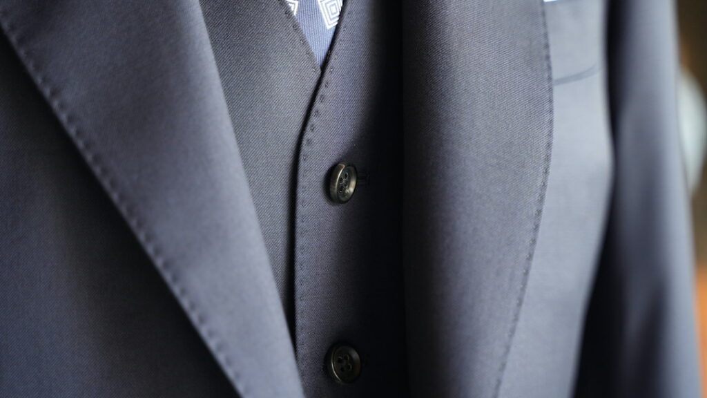 シングル2ボタンのスリーピーススーツにてご注文いただきました。