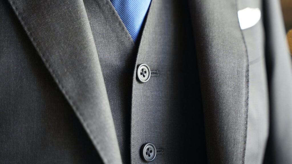シングル2ボタンのスリーピーススーツにてご注文いただきました。