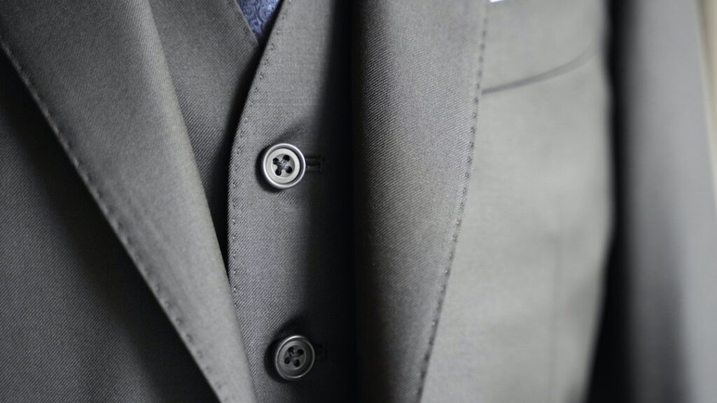 シングル2ボタンのスリーピーススーツにてご注文いただきました。