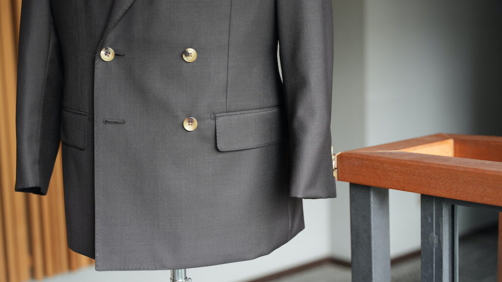 ダブル6×2ボタンのスーツにてご注文いただきました。