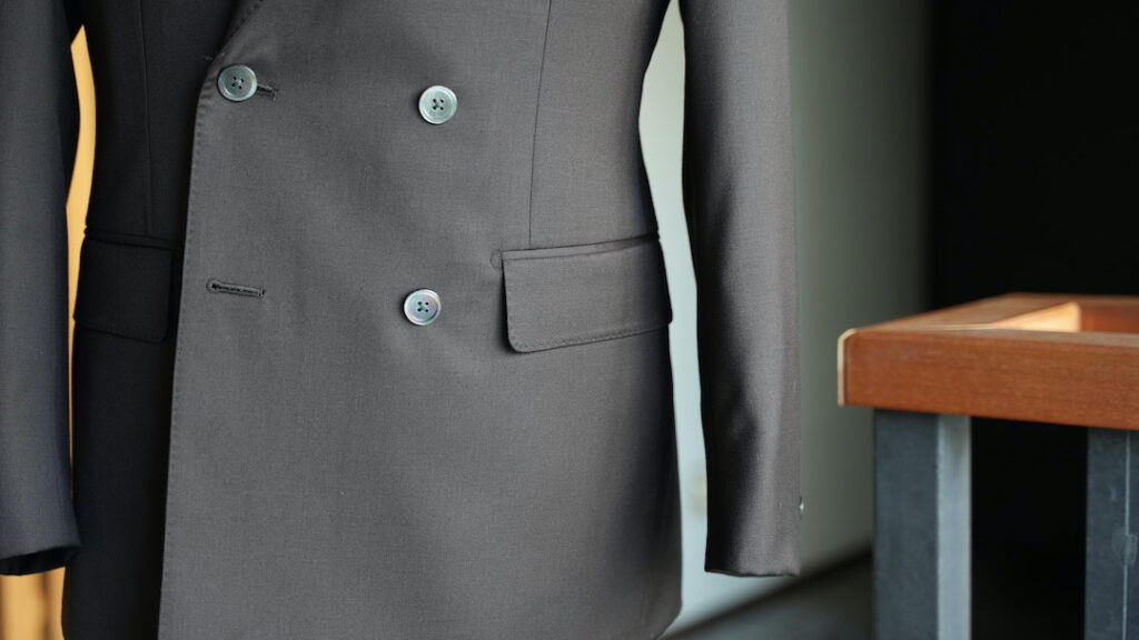 ダブル6×2ボタンのスーツにてご注文いただきました。