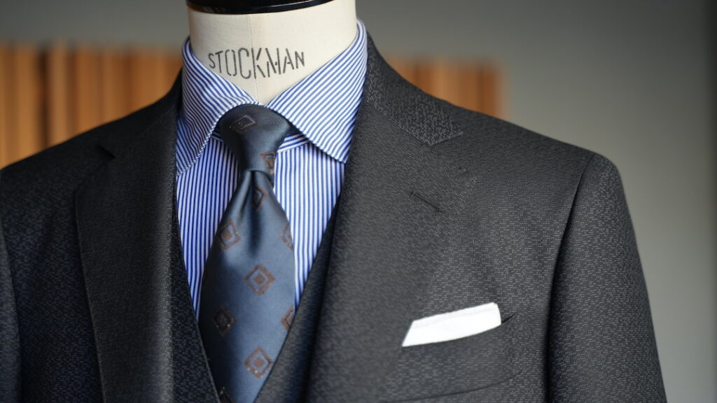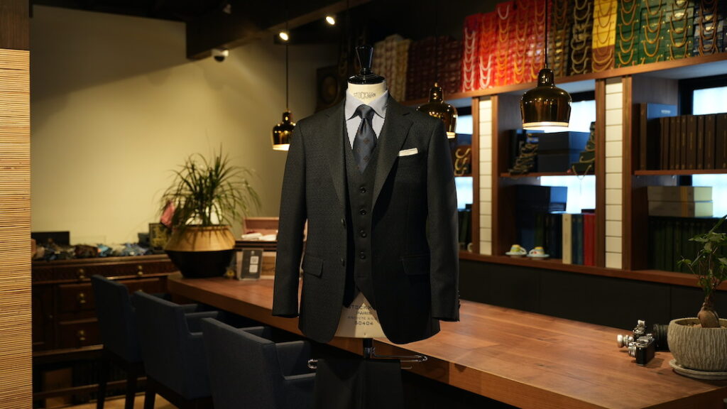 スリーピーススーツ 236,800円 ※生地やデザイン、お仕立て各種オプションによって価格は変わります。