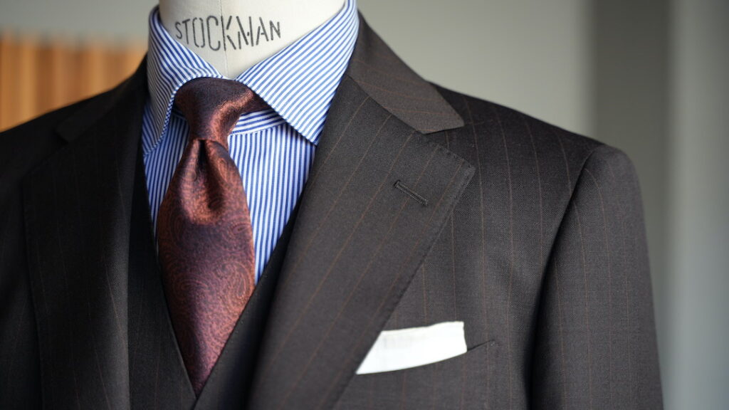 生地はBiellesiブラウンストライプ