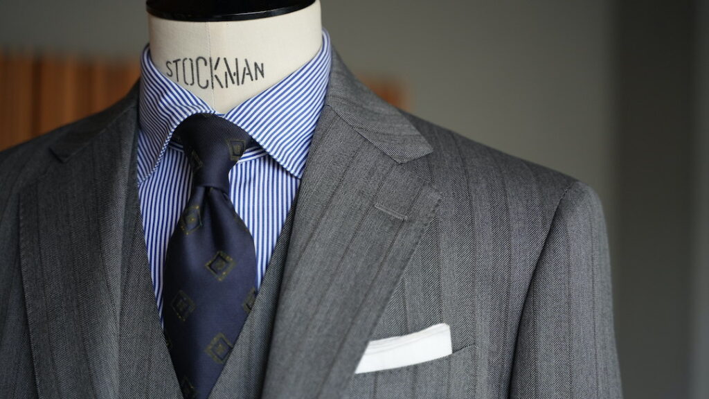 クラシカルなヘリンボーンにストライプ