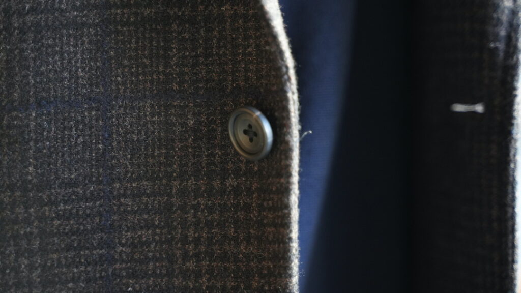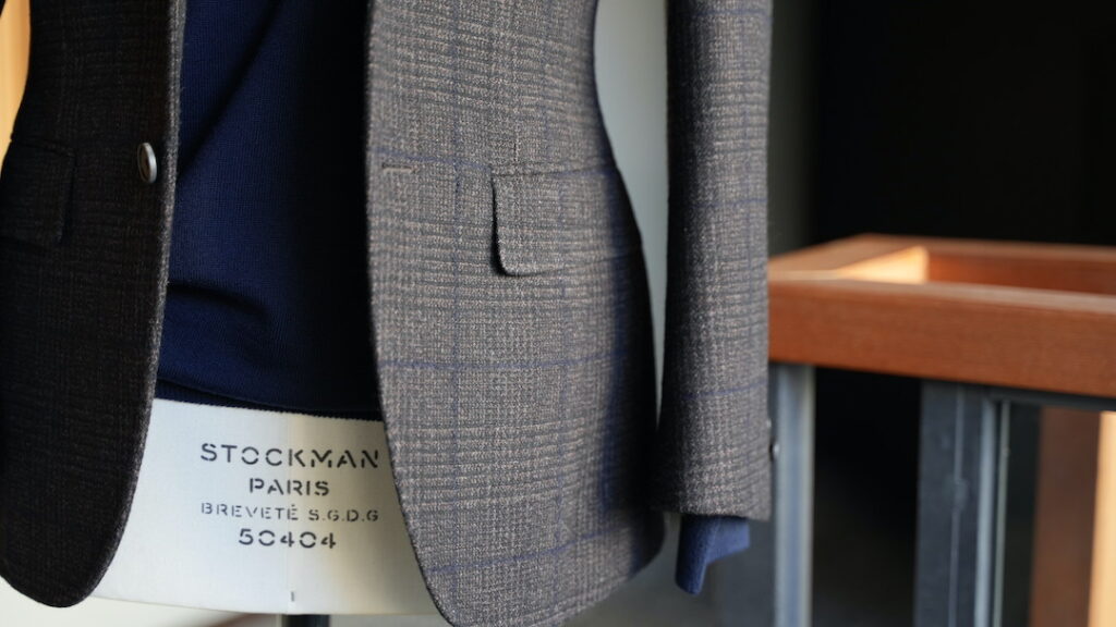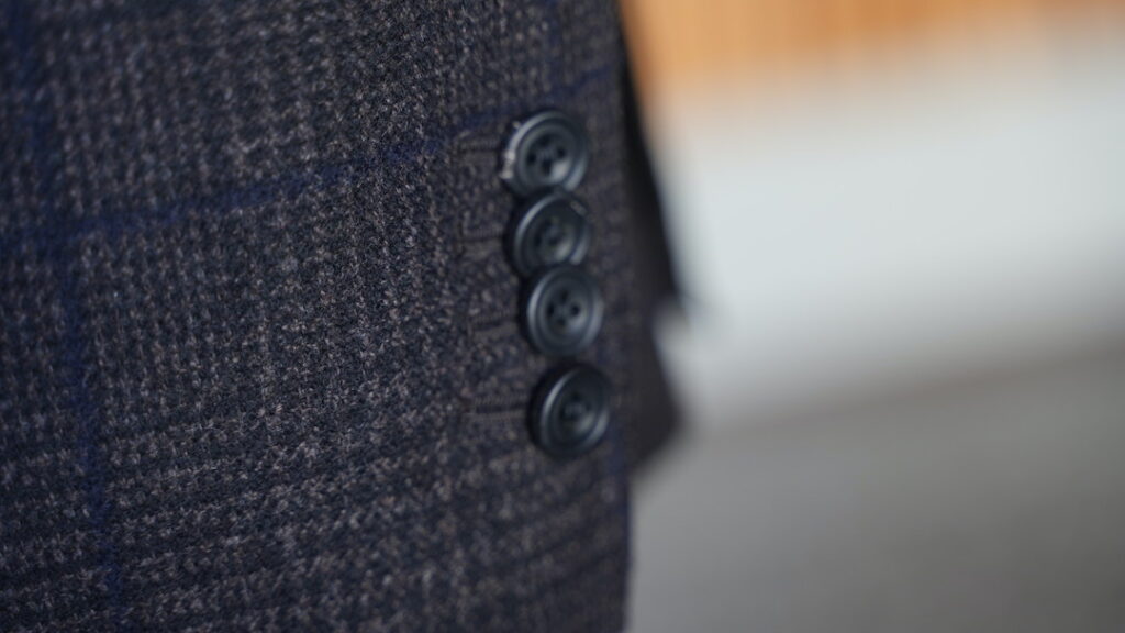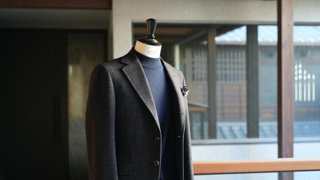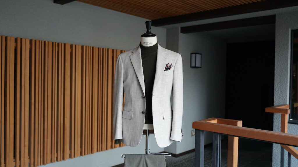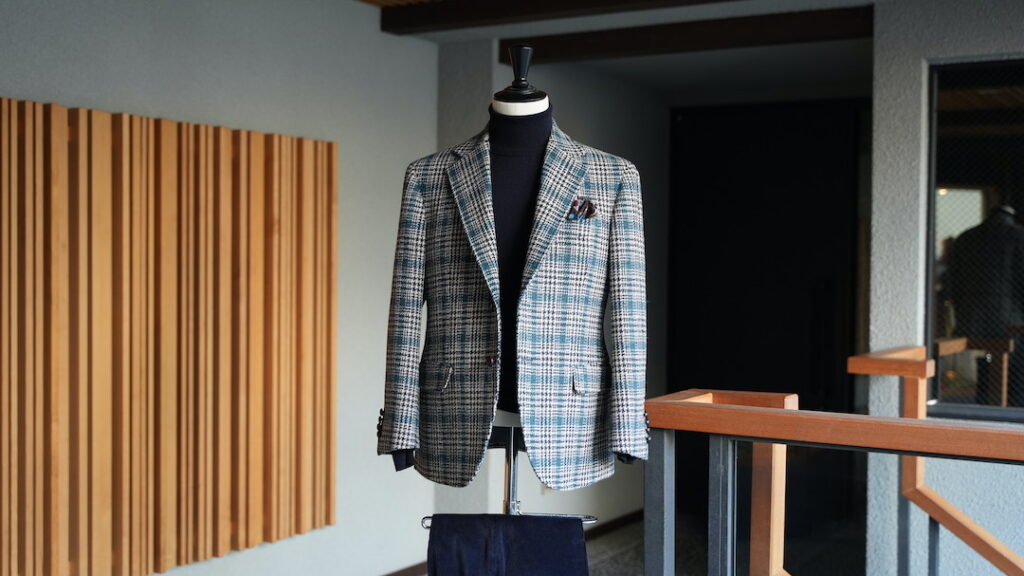 シングル3ボタン段返りのジャケットにてご注文いただきました。