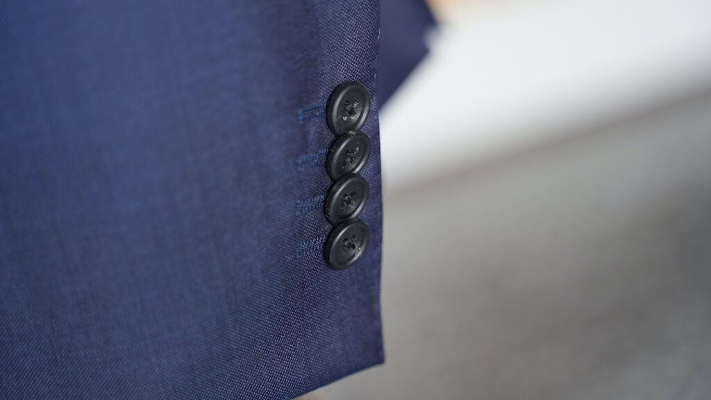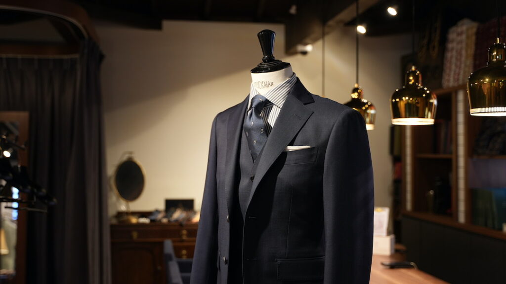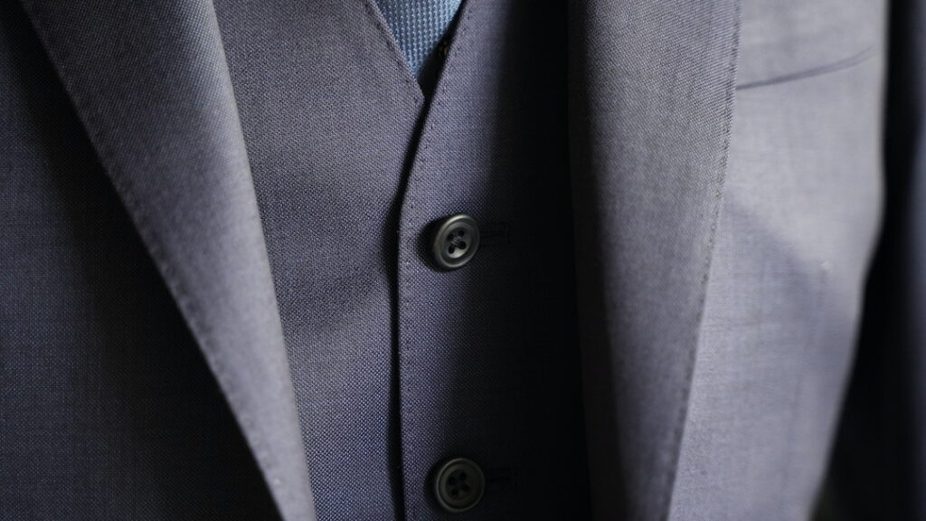 シングル2つボタンのスリーピーススーツにてご注文いただきました。