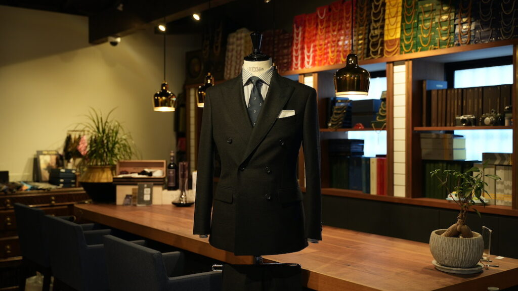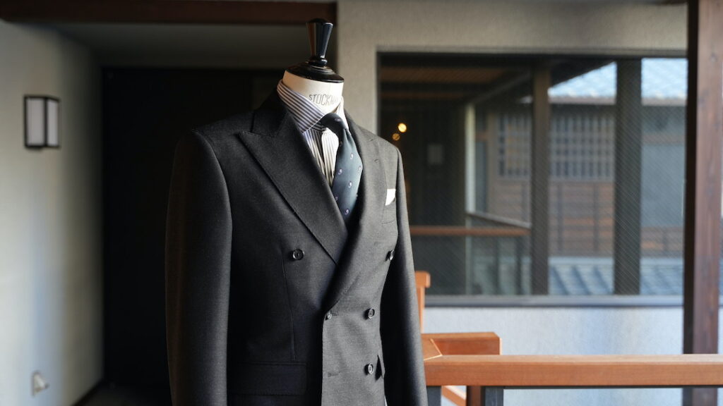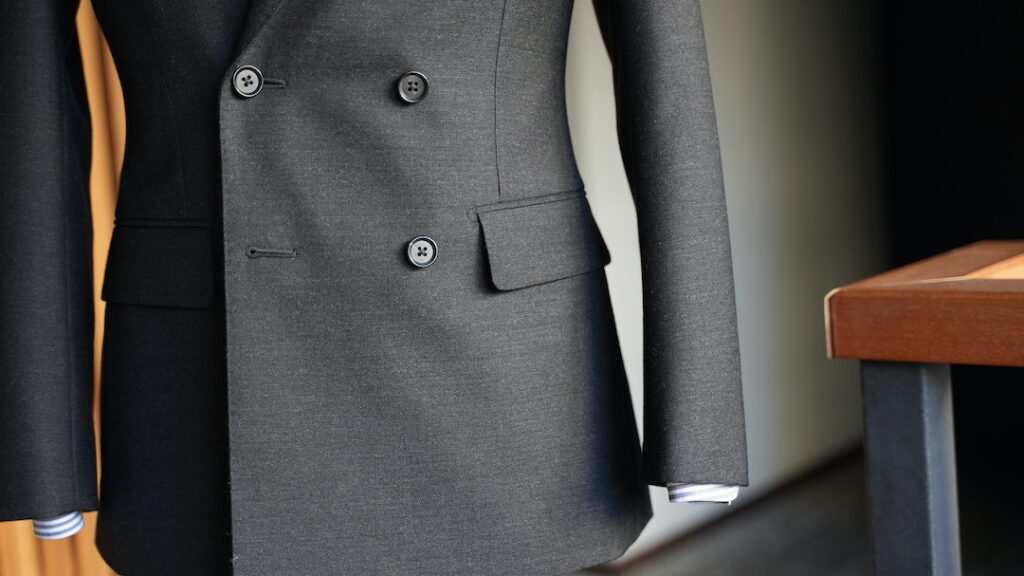 ダブル6×2つボタンのスーツにてご注文いただきました。