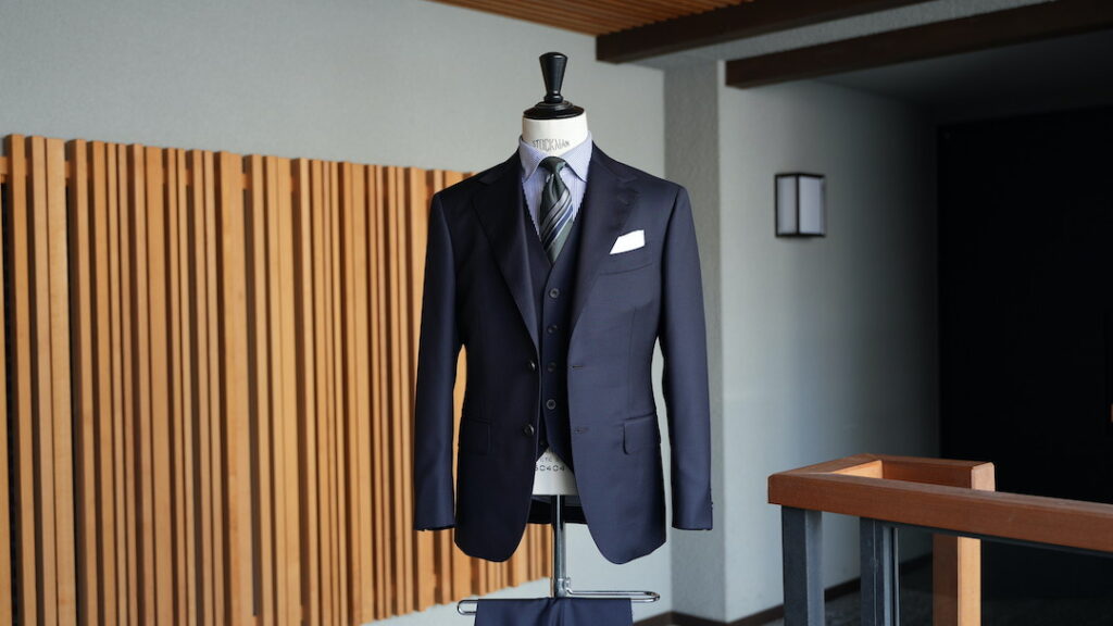オーダースーツの紹介-CANONICO 無地ネイビースリーピーススーツ-