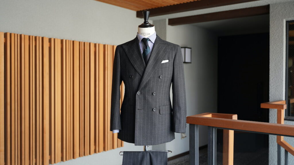 オーダースーツの紹介-SMITH & WOOLLENS グレーストライプダブルスーツ-